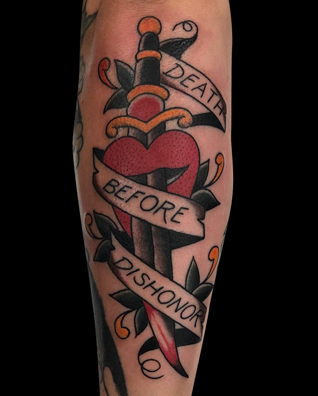 So Gabe and Colin just got back from the First Annual Arkansas Tattoo Convention. Gabe took a first place prize for best traditional. Lars finished a sick hourglass/skull. Cody put a snake and dagger on a client’s arm. Colin tattooed a dragon with flowers on a girl’s shoulder. Dan got to do a Jack-O-Lantern tat. Jen tattooed a sunflower skull on a knee. Jake did a big bad wolf tattoo on a forearm.