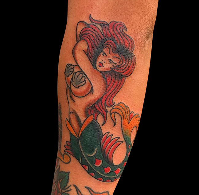 This week Gabe got to do a bunch of cool tats while working at Lifetime Tattoo in Denver. Colin got to do a sick skull mace. Lars added some strawberries to a sleeve. Dan did a frog ballerina tat. Jen tattooed roses on her client’s head. Jake did a traditional rooster head. Pablo did a floral figure drawing.