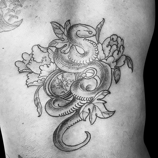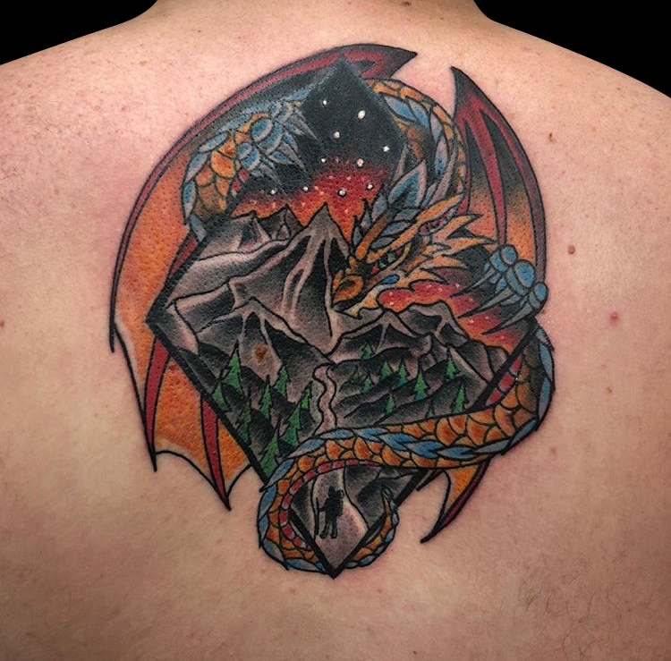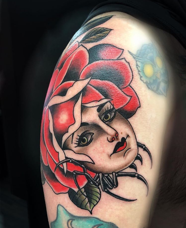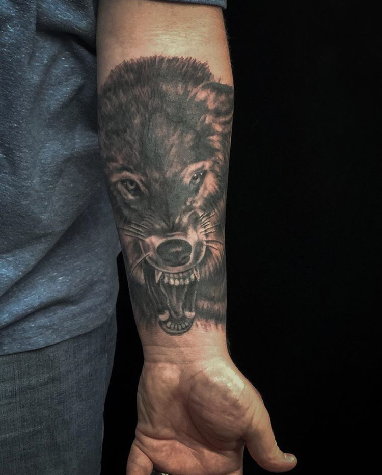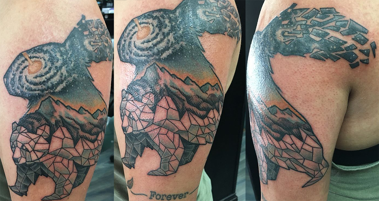 This week Gabe did a spider/rose/girlhead on a client. Cody fixed up a black and grey wolf his client originally got in a house. Lars tattooed a hilarious Dwight Schrute/beet on a dude’s leg. Colin got to do a Blasphemy band tattoo. Dan did a bear silhouette/landscape tat. Casey outlined a traditional dragon on a client’s back. Pablo got to do a snake with flowers.