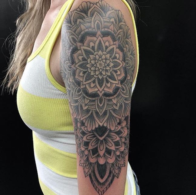 This week Gabe did a fun bear head on his client’s arm. Cody finished a mandala half sleeve. Lars tattooed an owl with a name on a dude’s forearm. Dan got to do a Sailor Jerry eagle and anchor on a chest. Casey got to do a stingray on one of his friends. Those and more below.