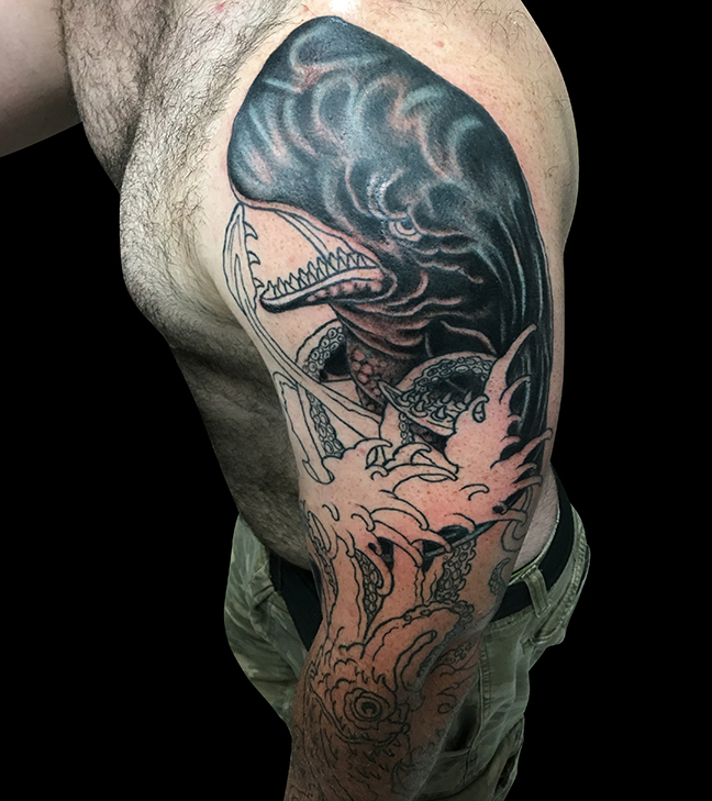 A lot of our guys have been on the road lately. Lars has been tattooing in Hawaii for a bit. He’ll be working the Seattle Tattoo Expo this weekend. Jason’s been traveling and tattooing in Colorado. Colin went out to St. Louis to tattoo at Iron Age for a week. Phil and Dan have both been dealing with injuries that are temporarily keeping them out of the game.