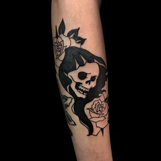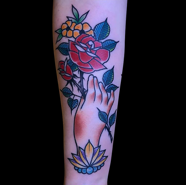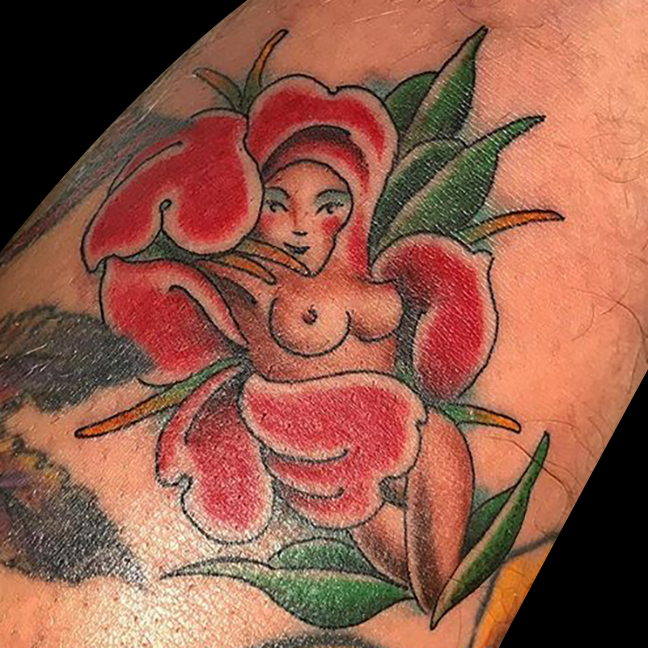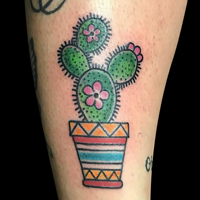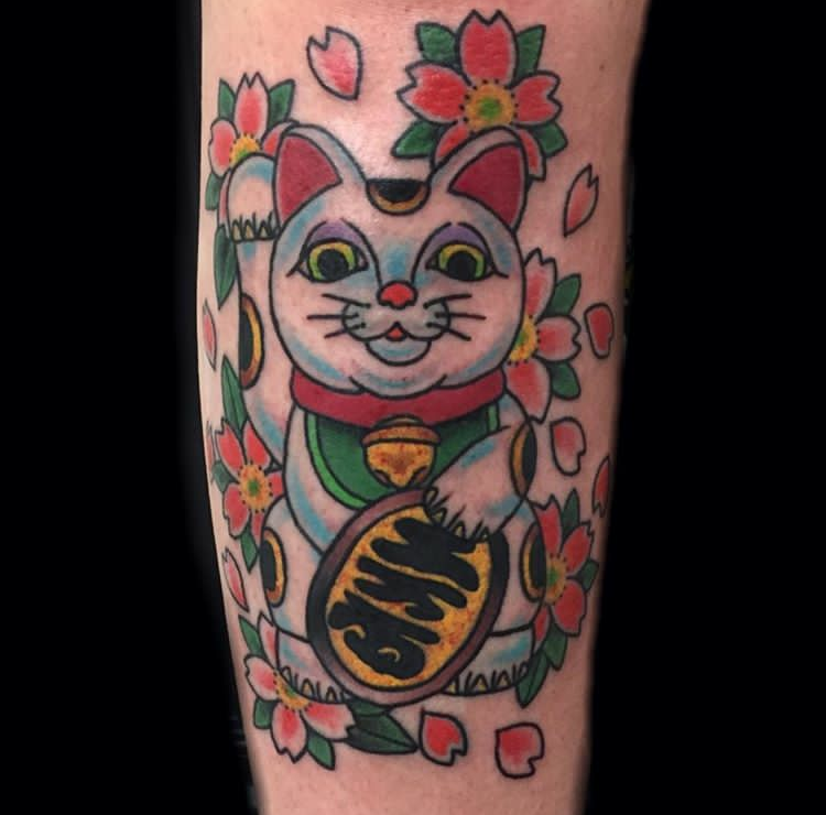 This week Gabe did a traditional sugar skull, added a girl head onto a sleeve he’s working on and tattooed some sparrows with names on a dude’s arms. Cody finished a black and grey lion and a nautilus. Dan tattooed a lucky cat on a friend of ours. He also got to tattoo some flash he painted. Jason tattooed a hand holding flowers and a little cactus. Felix got to do a colorful conch shell.