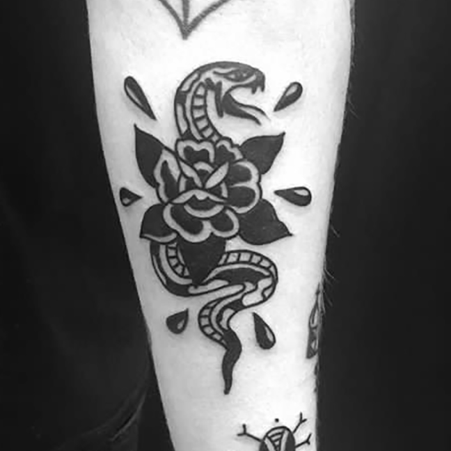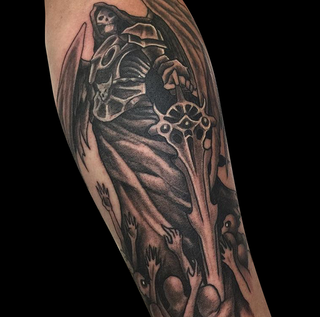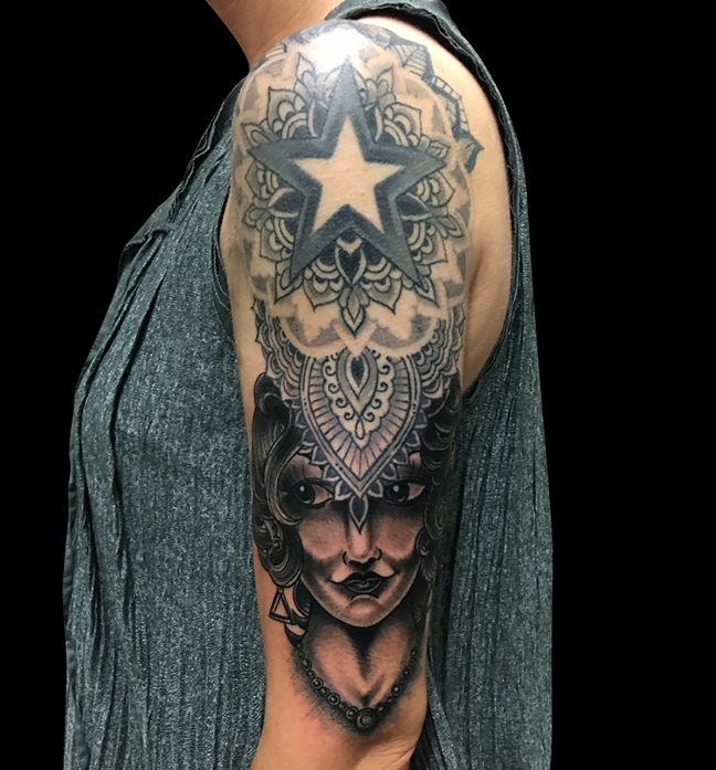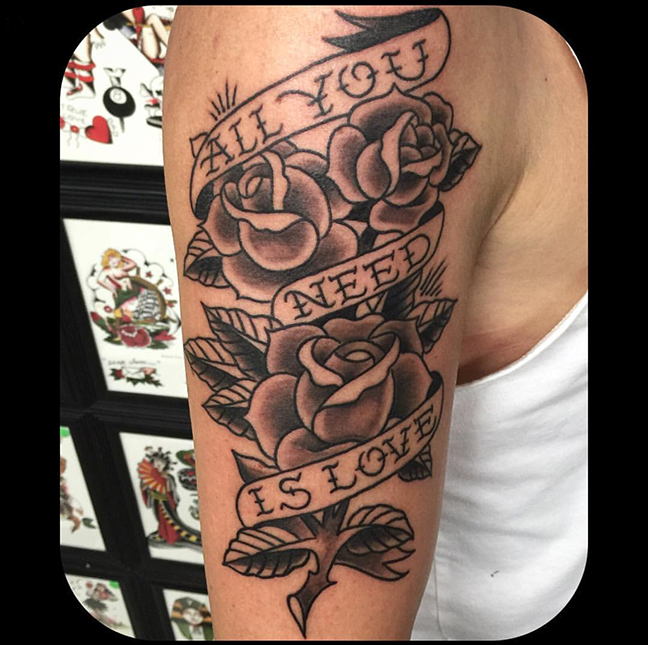 Gabe got to do a tiger face and a Winnie the Pooh tattoo this week. Cody finished a tribal stingray, did a session on a Fenix cover up and a pocket watch with roses. Jason tattooed some coffee beans on one of his clients. Colin got to do some cool blackwork tattoos. Mike did a reaper tat and a traditional boxer. Felix tattooed a colorful chrysanthemum and worked on a classic microphone with roses.
