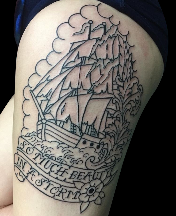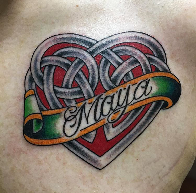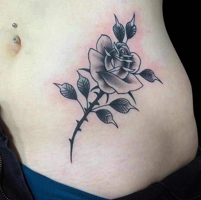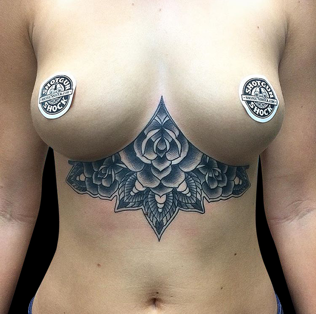 Hey guys, here’s you weekly shop update. Gabe got to do a traditional black and grey native girl head and an hour glass. Cody did a celtic heart with a banner. He also did session work on a dragon/wizard sleeve, worked on some Polynesian tribal and got to do bear and scorpion tattoos. Colin tattooed a cat skull with roses on a walk-in and a hand holding a flower on a dude’s arm. Jason got to do a super rad ornate sternum/stomach tattoo on one of his clients. Dan worked on a black and grey mountain/adventure piece and did some little traditional filler on a half sleeve he’s doing. Casey tattooed an octopus on a customer’s back. Felix got to do a mermaid tattoo and a little lavender tat. Moe did a Disney cat tattoo and a heart/dagger with roses. Enjoy the pics.