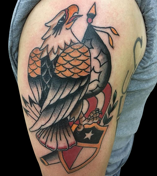 Got another weekly update for you so here we go. Gabe got to do a traditional cardinal with flowers, started an eagle cover up and did a claddagh ring on a customer’s thigh. Cody did a rad black and grey eagle/flag. Lars got to do an etherial triangular stairway. Colin tattooed a geometric feather on a walk-in. Dan did a huge black and grey mandala on a dude’s inner arm. Jason got to tattoo a big dreamcatcher, a shamrock and some flowers. Phil finished a floral half sleeve and did a skull with flowers. Casey got to do a tree of life tat. Felix did a Harley Quinn tattoo along with an eye and some small flowers. Have a good week guys.
