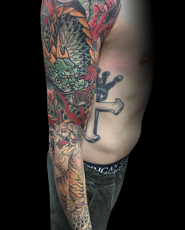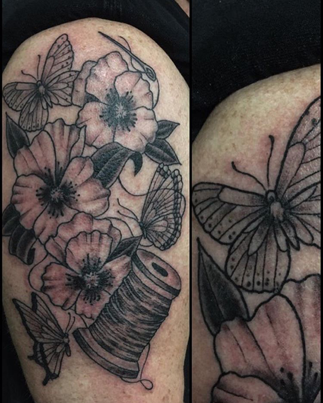 Let’s get this week’s update going. Gabe finished a dragon/tiger sleeve and did a black and grey traditional globe with flowers on a customer’s hip. Cody got to tattoo pansies with butterflies and needle and thread on a client’s arm as well as a Harry Potter time turner. He also worked on a tree silhouette back piece. Colin did a goat head tattoo along with a rose on a shoulder and a floral crescent moon. Casey tattooed a girl head on a walk-in. Dan got to do a mandala on a client’s inner arm. Jason tattooed a rose on a dude’s hand. Felix got to do a girl head, tree of life and a little bee tattoo on someone’s wrist. Moe did a Koi fish tattoo and a Pikachu.