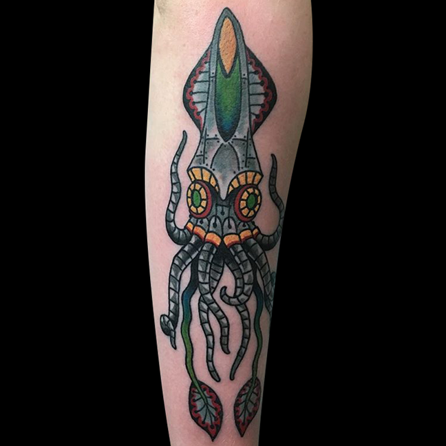Happy New Year everyone, here’s what we were up to this week. Gabe did a traditional native girl head on a walk-in and a light house on one of his regulars. Lars tattooed a robot squid on one of his clients. Cody got to tattoo a Hans Moleman/Virgin Marry over at Tattoo You. Casey tattooed an ornate mandala on a client’s stomach. He also got to do a black and grey portrait for one of his friends. Phil got to do a tattoo of one of his favorite comic characters. Dan did a black and grey rose with some script on one of his regulars. See you next time.