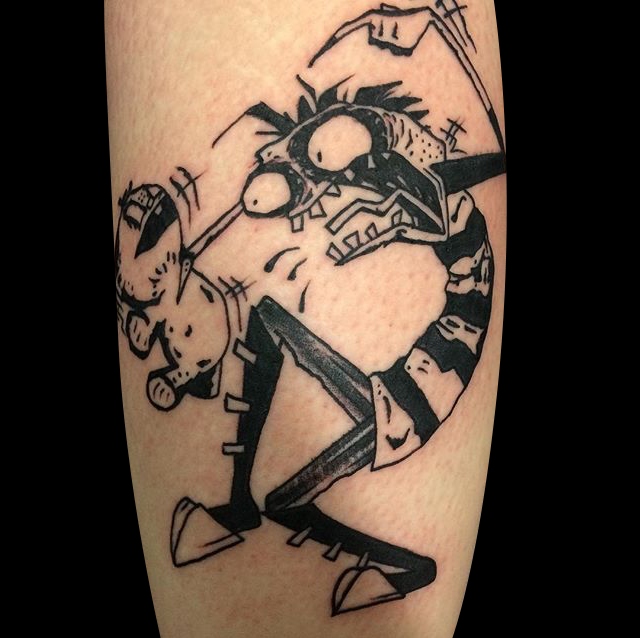 Hey guys, here’s this week’s shop update. Lars tattooed a woodcut-style clipper ship on a clients ribs and a geometric dog on a leg. Cody tattooed a black and grey tiger on a chest and a military patch on a shoulder. Colin tattooed lettering down a walk-in’s ribs. Dan finished up a traditional half sleeve, tattooed some roses on a girl’s arm, tattooed Hobbes on a clients rib cage and did a hello kitty on the back of a clients calf. Casey tattooed a wave on a walk-in. Phil got to tattoo the Soul Eater moon on one of his new clients. Morgan got to do a Boxy Brown tattoo from Aqua Teen Hunger Force. Moe tattooed a dragon and an ornate skeleton in black and grey. See you next week.