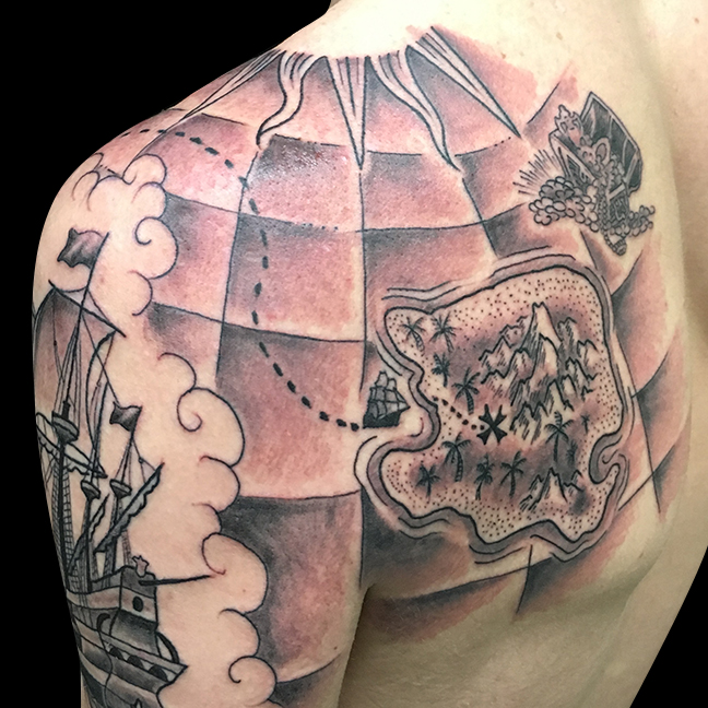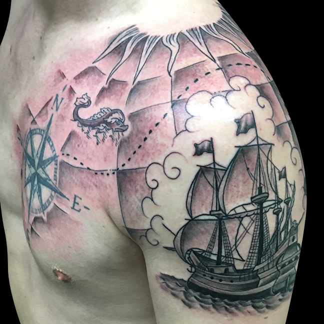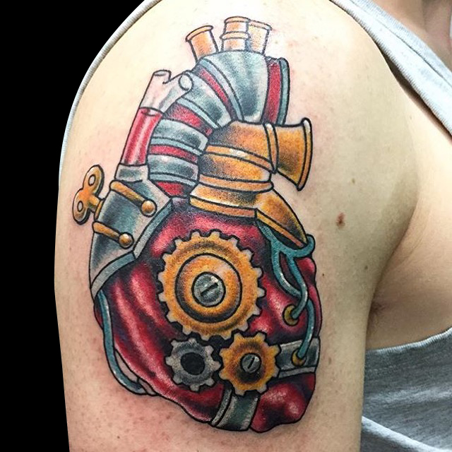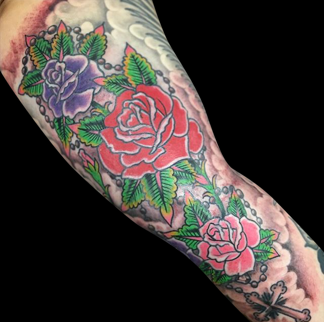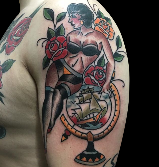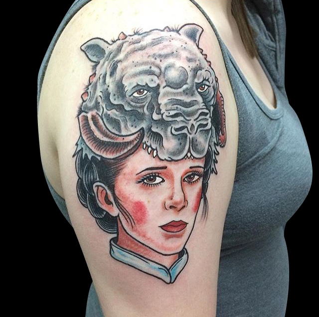 Well it’s Tuesday again so here’s your weekly dose of Iron Tiger stuff. This past weekend was one of the busiest we’ve ever had. Among the deluge of walk-in traffic Gabe was able to tattoo a traditional girl with a globe on a friend of ours. Cody tattooed a biomech, steam punk-ish heart on a guy’s shoulder and added some black and grey roses to a half sleeve he’s working on. Colin tattooed a lion head on a girl’s forearm and a pinecone on one of his regular clients. Phil got to do a princess Lea tattoo and a Lord of the Rings tattoo. Dan did a traditional rose/key on a client as well as a tribal Griffin and some butterfly/skulls. Alysha tattooed some giant mandalas on a woman’s back. Moe tattooed a cross with wings on an arm and a rose on a dude’s collar bone. Enjoy the Pics.