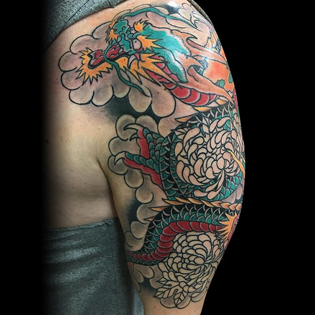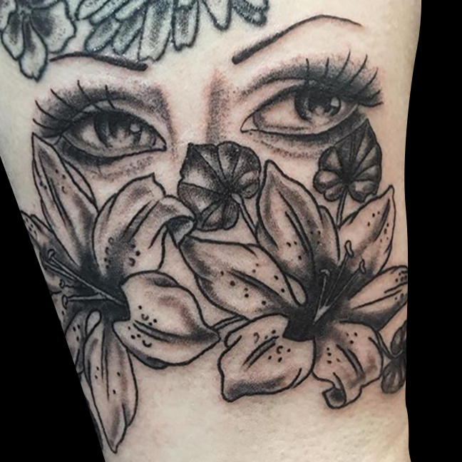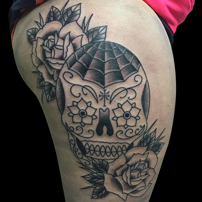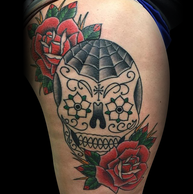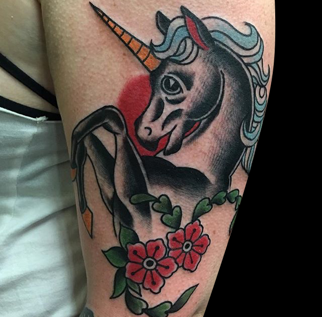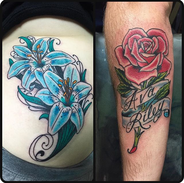 What’s up guys, here’s the shop update for the week. Gabe left over the weekend to tattoo at Spotlight Tattoo in LA for a few days. Before he left he got to do some fun traditional tattoos including a unicorn and a couple skull designs. Lars outlined a giant Odin/Raven chest piece and tattooed a cool landscape/cowgirl tat on one of his regulars. Cody got to tattoo a big spider along with a small celtic knot and a rose with a name. Dan tattooed a hummingbird on one of his clients and made some progress on a huge sugar skull thigh piece. Morgan tattooed a traditional dragon on a forearm as well as a little circle symbol. Moe tattooed a cool tiger on a shoulder and a pokemon. Alysha tattooed some lilies, a stipple-shaded landscape and a badass Dimebag memorial. Casey tattooed a motorcycle engine on one of his regulars. Felix got to tattoo some eyes with lilies, a dreamcatcher and a hummingbird. Enjoy the pics guys. Don’t forget to vote today!