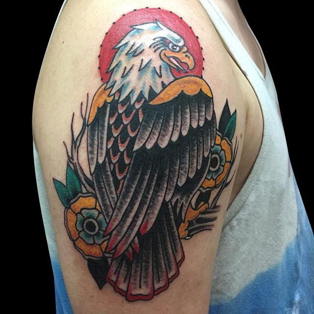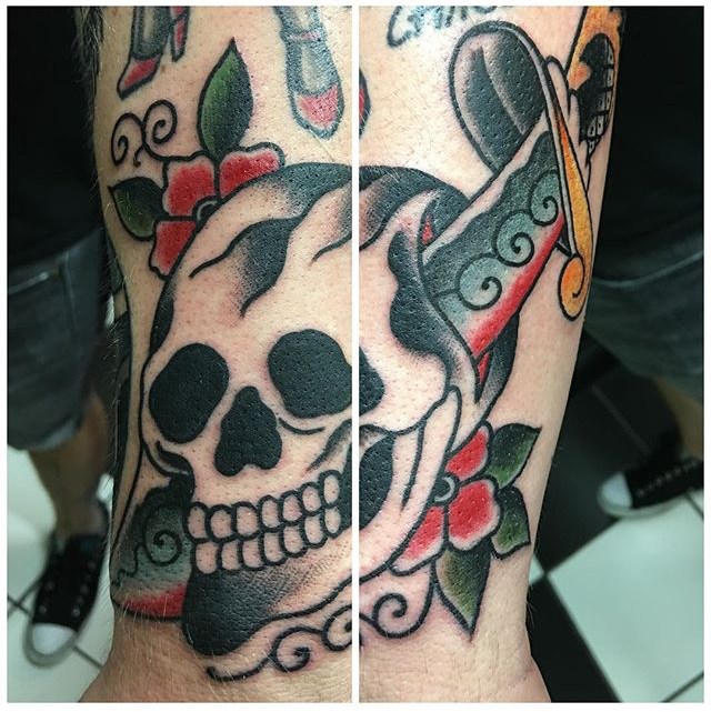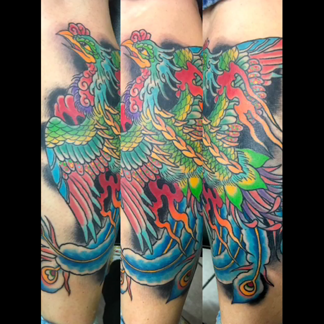 Hey guys, here’s this week’s shop update. Gabe finished a Fenix he’s been working on. He also tattooed a traditional skull and cross bones and a globe. Cody did a traditional lock with girl heads, started a huge dragon cover up and did a few different flower tattoos. Lars added some flowers to a sleeve he’s had in the works and did a baby Batman tat. Dan finished an eagle chest piece as well as a traditional floral mandala and an anvil on the palm of a hand. Morgan tattooed a flower of life. Alysha got to do a little teacup tattoo along with a tiny rose and some text. Moe got to do a bunch of cool tattoos this week including an eagle head, a wolf head and some butterflies. Enjoy the pics.