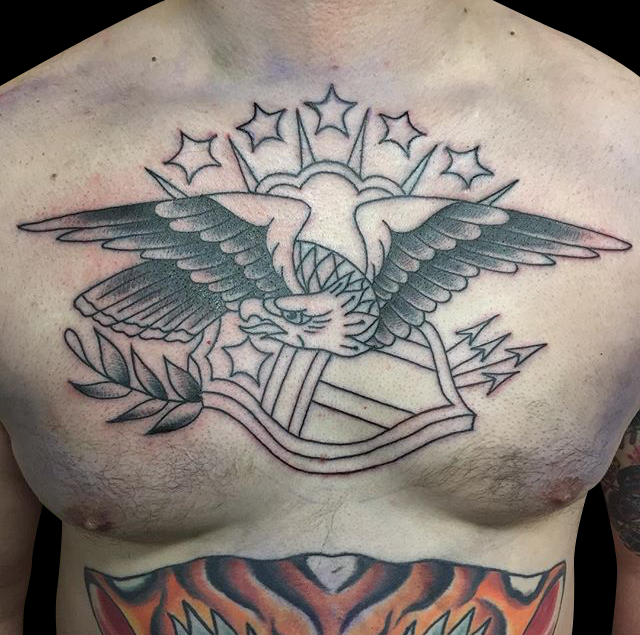 I’ve got a lot for you in this week’s update so lets get into it. So both Iron Tiger and Tattoo You have been absolutely insane lately. As you can see by the number of pics I have for you this week, everyone has been stupid busy. Gabe did sessions on a bunch of larger pieces he’s been working on. He also did a traditional snake head. Cody tattooed a big traditional eagle on a guys arm and some black and grey wings. Lars finished a black and grey chest piece and a huge nautical shoulder piece. He also tattooed Oscar the Grouch in a Four Loco can on a guy’s leg. Dan tattooed a traditional buffalo head, started an eagle chest piece, did a session on a sugar skull thigh piece and a mandala on a shoulder. Colin tattooed a black and grey ornate rose. Phil tattooed a wooden anatomical heart, a thistle seal, and a rose with script among other things. Morgan did several floral tattoos. Moe tattooed and owl with a sugar skull and a poison bottle. Alysha tattooed a native girl head and a Bowie lightning bolt.