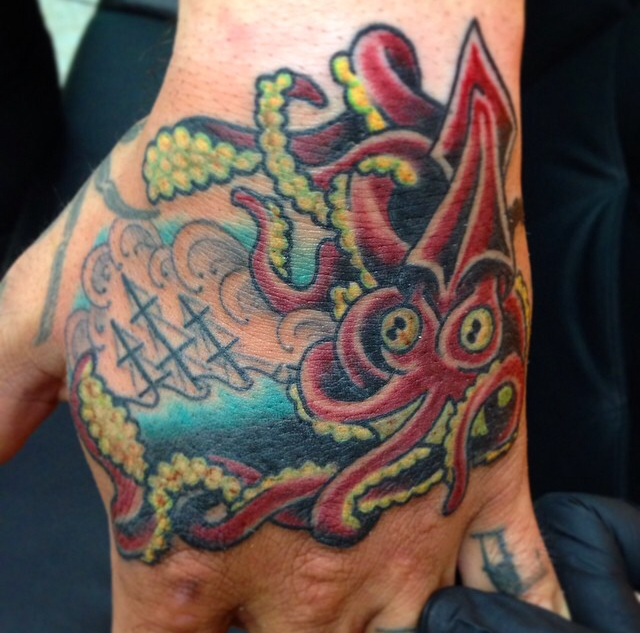 Hey everyone, here’s this week’s shop update. Gabe, Morgan and Lars all tattooed out counter guy Cody this week. Gabe did some more work on his back piece, Morgan did a filler piece on his arm and Lars tattooed a squid on his hand. Cody got to do a couple different flower thigh pieces, one of which was a cover up. Colin and Morgan both did lighthouses on a couple that walked in on Saturday. Morgan also got to do a sick Ninja Turtles tattoo. Dan tattooed a geometric tattoo on a walk-in over at Tattoo You. He also did a diabetic tattoo on one of his friends. Hunter was on the piecing grind all week as usual. He did some cheek dermals over the weekend.