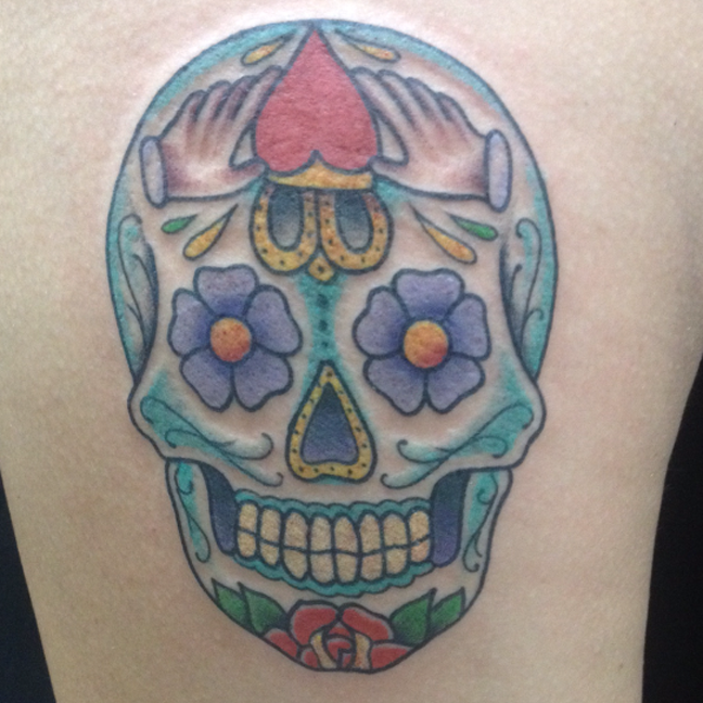 Well it’s Tuesday again so here’s your weekly dose of Iron Tiger stuff. As usual, Gabe had some large pieces in the works including the skull/rose shoulder tat in the pics below. Colin made some progress on a half sleeve he’s been working on and got to do some cool traditional flash on a walk-in. Cody did a sick Viking Girl on a customer over at Tattoo You. Lars had a decent amount of appointments this week including a nice traditional anchor/rose. Moe got to do a Reaper on a walk-in client on Saturday. Morgan did a fun little crystal cluster on Lars’s wife Tiffany. Cody, Lars and Casey all cranked out some rad new flash.
