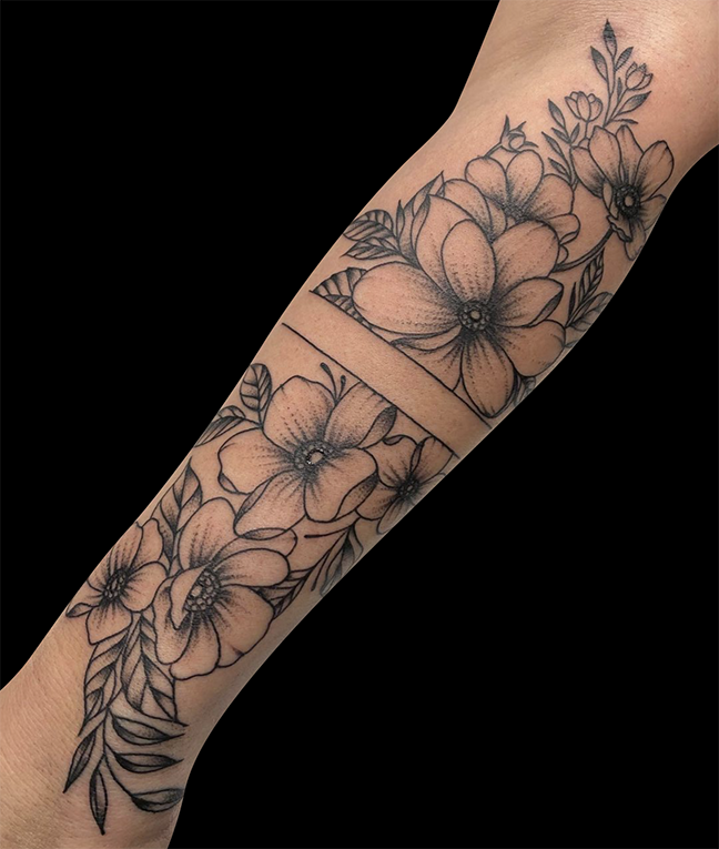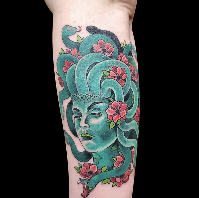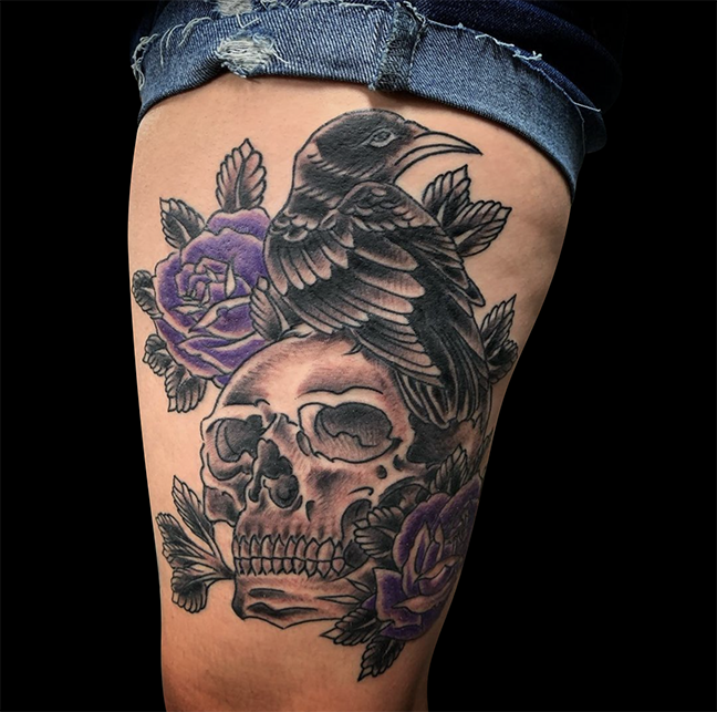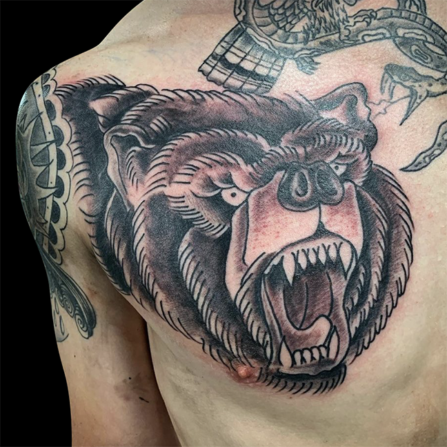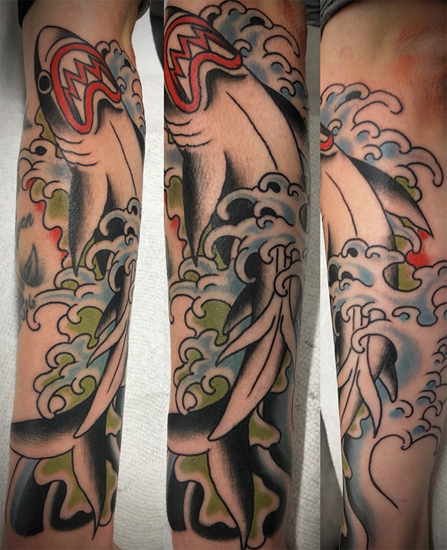 Prior to our temporary shut down, Gabe got to do a traditional bison head as a cover up. Casey tattooed a Harley engine on his brother’s hand. Jen got to do a floral arm band. Dan did a sick Marine Corps tat on a client’s arm. Colby did a traditional girl head. Those and more below.