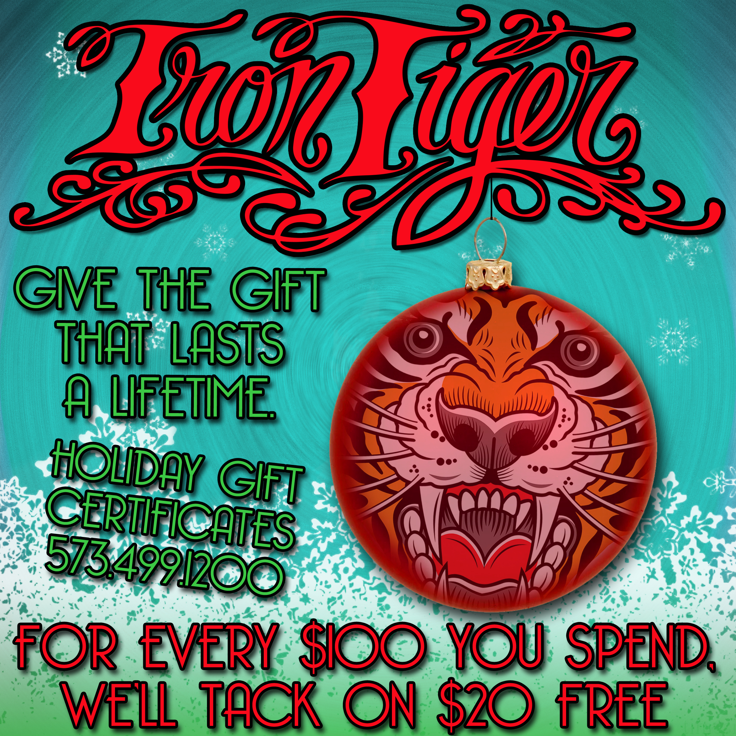 Don’t forget about our holiday gift certificates! For every $100 you spend, we’ll add $20 free. Offer lasts through 12/23. Give ’em what they really want!!!