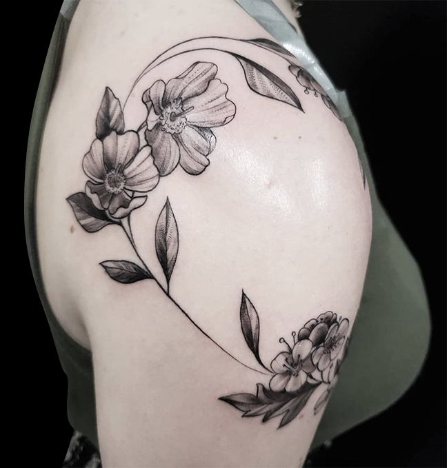 Prior to our temporary shut down, Gabe got to do a traditional bison head as a cover up. Casey tattooed a Harley engine on his brother’s hand. Jen got to do a floral arm band. Dan did a sick Marine Corps tat on a client’s arm. Colby did a traditional girl head. Those and more below.