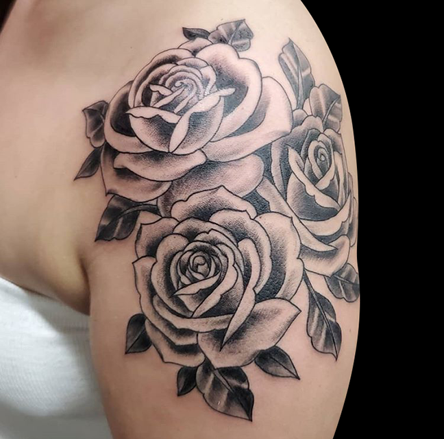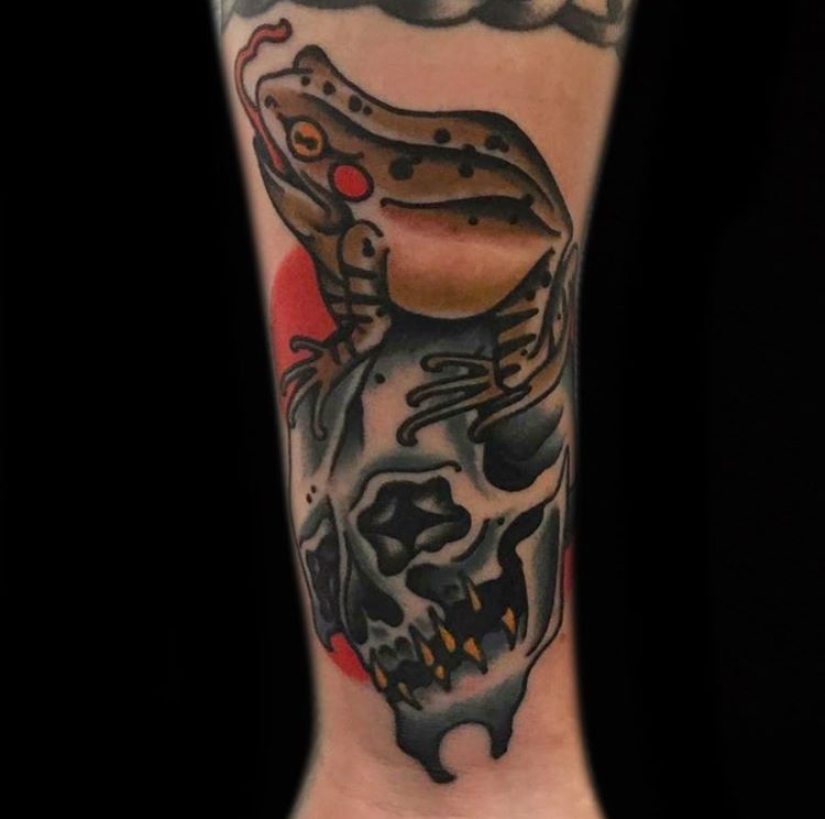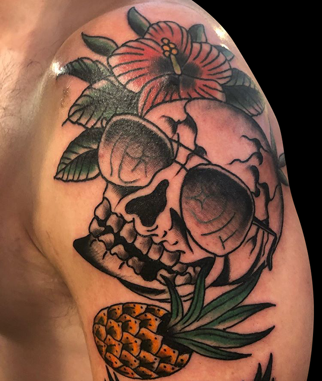 This week Gabe got to do a bunch of cool tats while working at Lifetime Tattoo in Denver. Colin got to do a sick skull mace. Lars added some strawberries to a sleeve. Dan did a frog ballerina tat. Jen tattooed roses on her client’s head. Jake did a traditional rooster head. Pablo did a floral figure drawing.