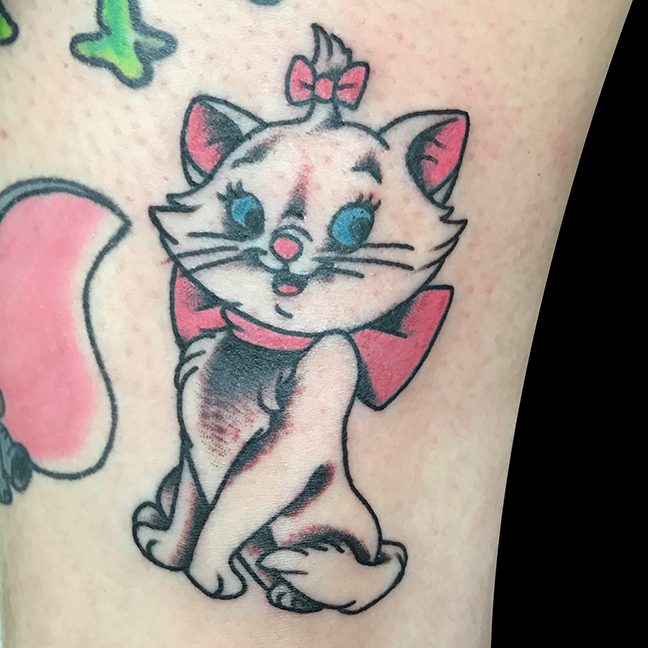 Hey guys, here’s you weekly shop update. Gabe got to do a traditional black and grey native girl head and an hour glass. Cody did a celtic heart with a banner. He also did session work on a dragon/wizard sleeve, worked on some Polynesian tribal and got to do bear and scorpion tattoos. Colin tattooed a cat skull with roses on a walk-in and a hand holding a flower on a dude’s arm. Jason got to do a super rad ornate sternum/stomach tattoo on one of his clients. Dan worked on a black and grey mountain/adventure piece and did some little traditional filler on a half sleeve he’s doing. Casey tattooed an octopus on a customer’s back. Felix got to do a mermaid tattoo and a little lavender tat. Moe did a Disney cat tattoo and a heart/dagger with roses. Enjoy the pics.
