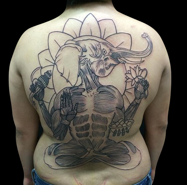 Well here we are again guys, it’s Tuesday and I’ve got another shop update for you. Gabe finished a dragon half sleeve and a black and grey gypsy girl/moon. He also did a traditional mermaid and a ship. Cody did a black and grey koi and started a tiger half sleeve. Colin tattooed a frog playing a banjo. Phil started an anatomical Ganesha back piece. He also tattooed an Alice in Wonderland illustration and a big mandala. Dan tattooed a heart in a bottle, a traditional hand with flowers, an arrowhead behind an ear and a midwest hardcore tat. Morgan tattooed the Duck Hunt dog on a customer’s waist. Moe tattooed a flower on a client’s arm and a Buddhist symbol on a sternum. Casey tattooed a sugar skull on a leg. Alysha got to do a black and grey rose. Felix did some small flowers with text on a ribcage. Have a good week guys.