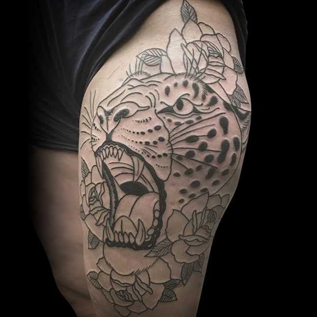 Hey guys, thanks for checking out this week’s shop update. Gabe got to do a traditional skunk tattoo along with an elephant head and a mouth. Lars tattooed a gaslight lamp with a cat on a client’s thigh. Cody tattooed a buffalo head with a landscape background. Colin got to do a traditional mom/heart. Phil tattooed a zombie banana on a regular. Morgan got to do a Lisa Frank style leopard, a flying pig and a storm cloud. Alysha tattooed a floral mandala on a thigh. Moe got to tattoo a tiger head and a crow head cover up on a hand. Felix did a couple different black and grey traditional rose tattoos. Boom!