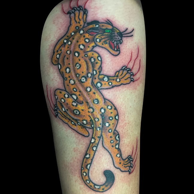 Although his primary style of tattooing is american traditional, he’s also well versed in Japanese, Polynesian and black and grey. When not tattooing he spends alot of time painting in several mediums including watercolor and oil.