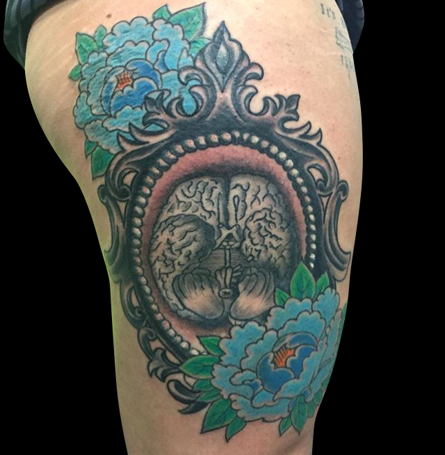 Thanks for checking out this week’s update guys. Gabe knocked out a bunch of cool tattoos this week including a black and grey Tiger portrait, a traditional rose with leaves on a chest, and a pair of mandalas on a girls feet. Lars did an awesome black and grey Koi half sleeve, an octopus on a clients chest and a big rooster on a girl’s arm. Kasper did a black and grey sunflower on a walk-in. Cody made some more progress on a Wizard of Oz sleeve he’s working on and did a cheetah print skin rip on a girl’s ribs. Dan tattooed a brain in an ornate frame with flowers on a client’s thigh as well as a skull and rose on a walk-in. Colin finished up a rad cowgirl/catfish painting.