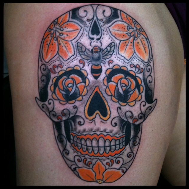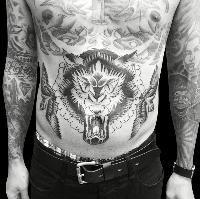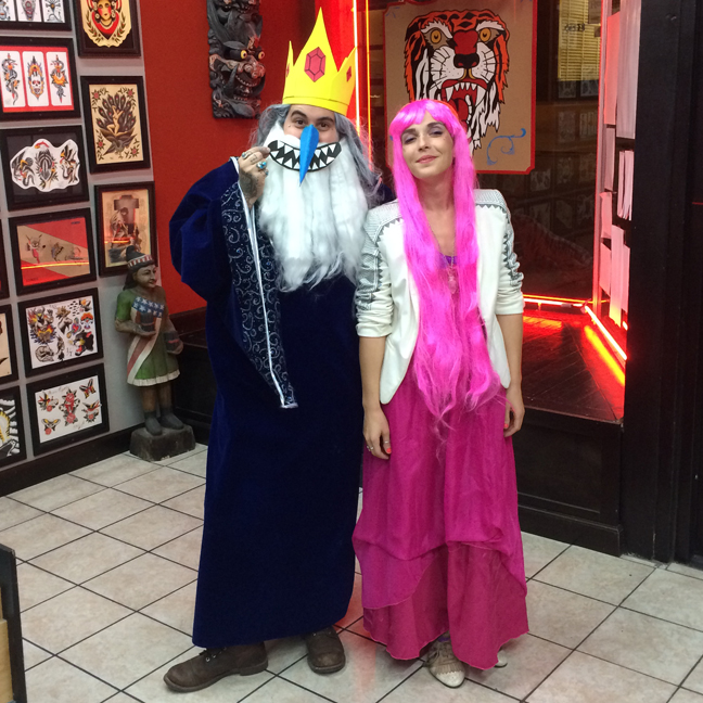 Hey guys, thanks for checking out this week’s update. Gabe is back in town from his vacation and taking appointments so get at him if you’ve got something in mind. Colin did another session on a wolf head on his client’s stomach. Cody did an anatomical heart on a walk-in and finished a nesting doll painting. Lars started a dogfight sleeve and did an array of walk-ins including a couple lip tattoos. Casey did a rad tribute tattoo. Moe did a sick Courage the Cowardly Dog tat on our counter guy Cody’s leg. Dan did a little Playboy-tit-face-bunny on my leg. Phil’s been overseas doing cool guy electronic music stuff. He’ll be back home next week if you’re wanting to get tattooed by him. We hope everyone had an awesome Halloween. GO VOTE!