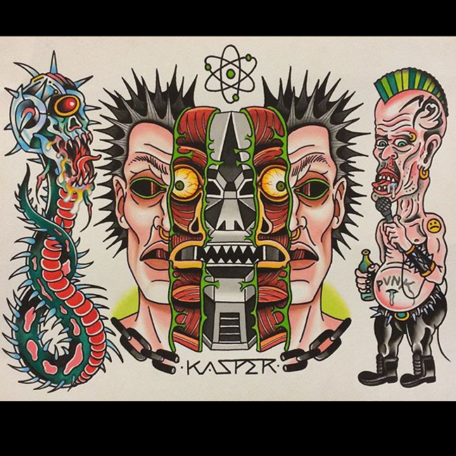 Hey guys, we had some technical difficulties that made us postpone the weekly post until today, sorry about that. This week Gabe did a black and grey Joker on a clients foot. He also tattooed a lot lizard and a traditional scorpion. Phil finished up a Yoshi half sleeve and did a traditional eagle on a walk-in. Dan did another session on a huge koi thigh piece, fixed/finished an old owl tat for a walk-in client and did some vampire lips. Morgan got to tattoo a nice black and grey cross/rosary and a frog princess as well as finish up some paintings. Kasper also finished a painting this week. See you next time.