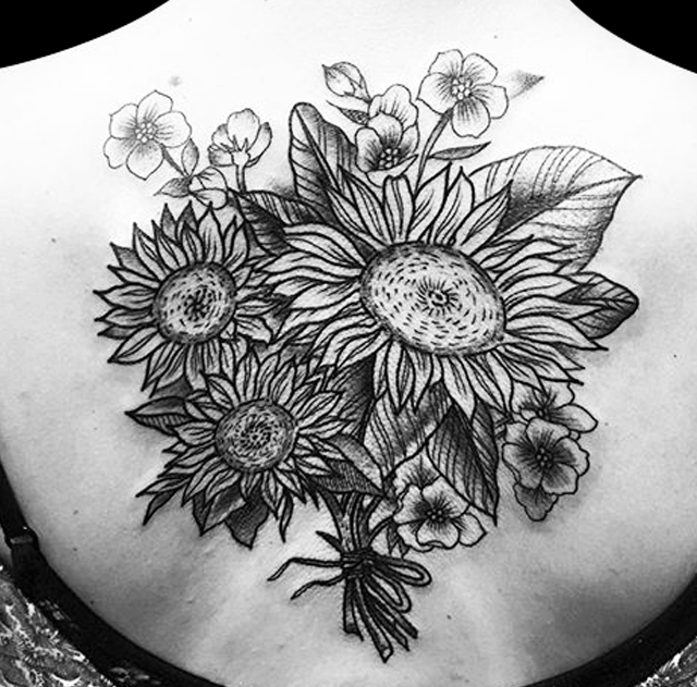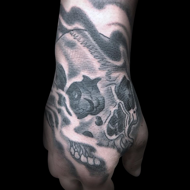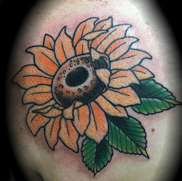 Hey guys, thanks for checking out this week’s shop update. Gabe tattooed a black and grey skull w/ smoke on a dude’s hand, outlined a huge dragon on a guys chest/stomach and did a little traditional tomb stone. Cody did a color session on a dragon he’s been working on and started some celtic knot work on a clients stomach. Dan tattooed a traditional hand with roses, a treasure chest and some small flowers around an existing tattoo. Colin tattooed a large bouquet of sunflowers on a client’s back. Phil got to do a baphomet on a dude’s leg. Felix got to do a Pokemon tat. Boom.