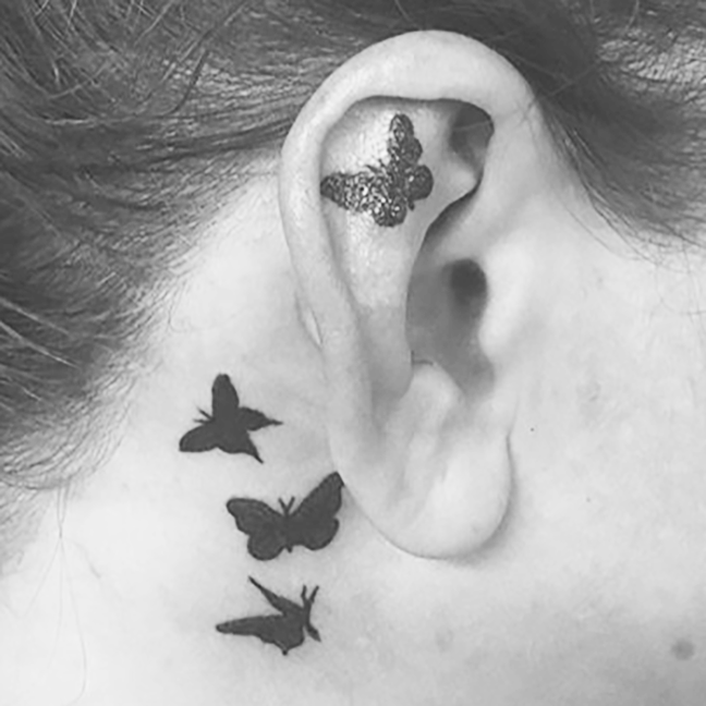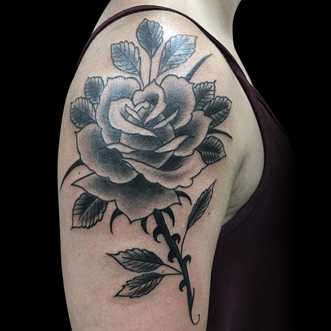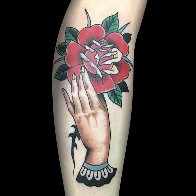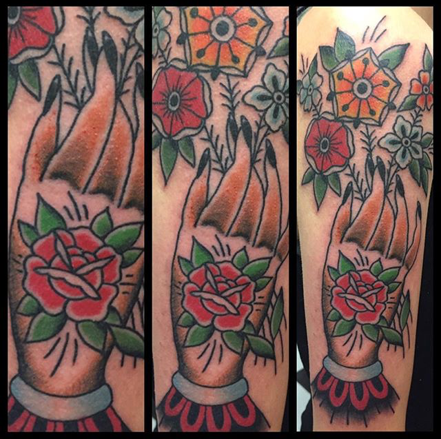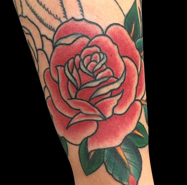 Hey guys, thanks for checking out this week’s shop update. Gabe tattooed a big rose and lace stomach piece on one of his clients as well as a fine line black and grey rose on a hand. Colin did a background session on a rose sleeve he’s had in the work. He also did a watercolor trinity knot and got a healed pic of a traditional landscape framed in an arrow head he did awhile ago. Cody outlined a floral half sleeve as well as finishing some butterflies, a bull skull and some fancy script. Casey tattooed a large rose on a shoulder. Dan got to tattoo a traditional elephant head. Moe tattooed a rose on one of his friends. Felix got to tattoo a little sea turtle and ribbon. Enjoy the pics.