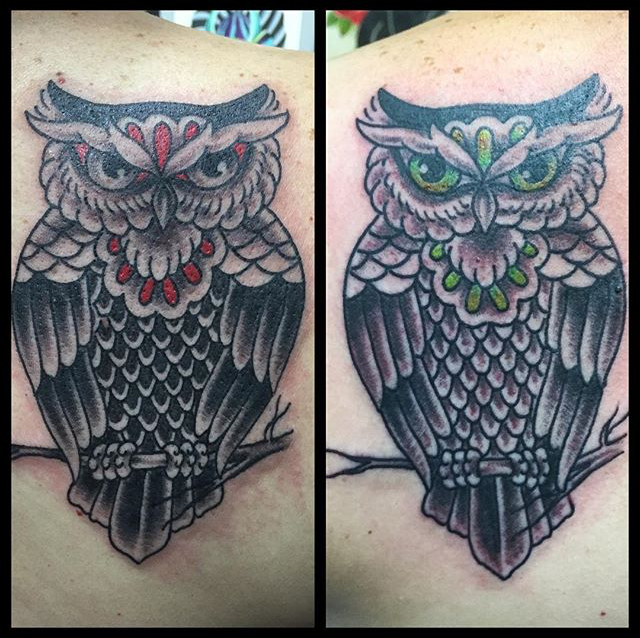Here’s your weekly dose of shop stuff guys. Gabe outlined a girl head back piece on a friend and did some traditional hands with roses. Cody tattooed a Babe Ruth portrait and some owls. Dan tattooed a rose on an elbow. Colin tattooed a pistol on a dudes hip along with some watercolor/flower/sister tattoos. Phil finished up a sick Transformers tattoo. Casey tattooed a girl head on a calf. Felix tattooed a demon face based on a drawing done by her customer’s father along with some text.
