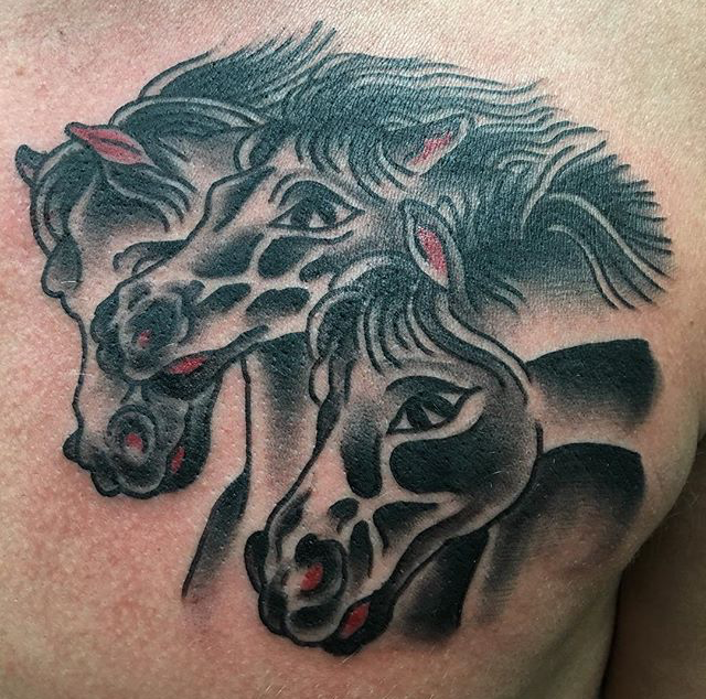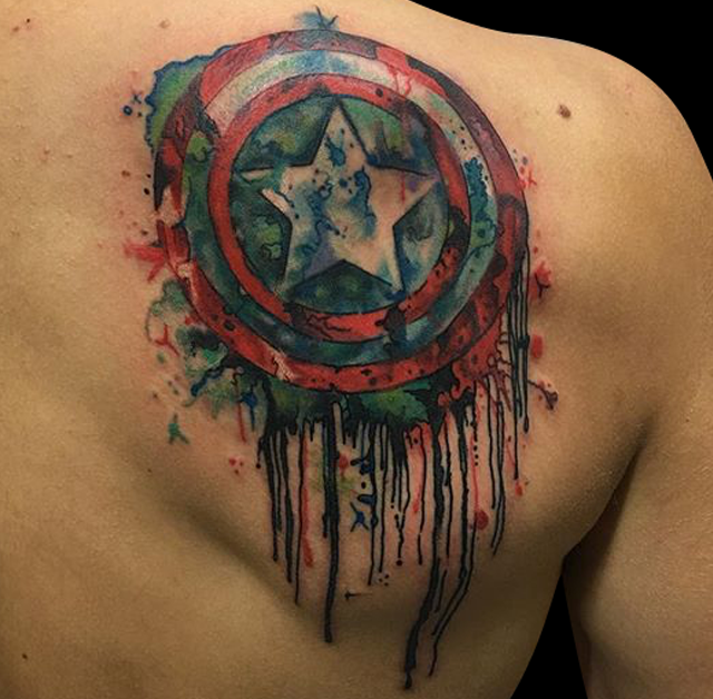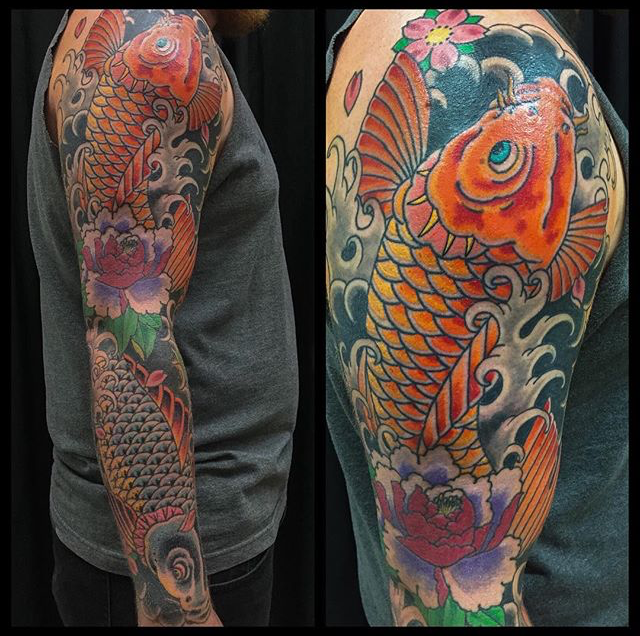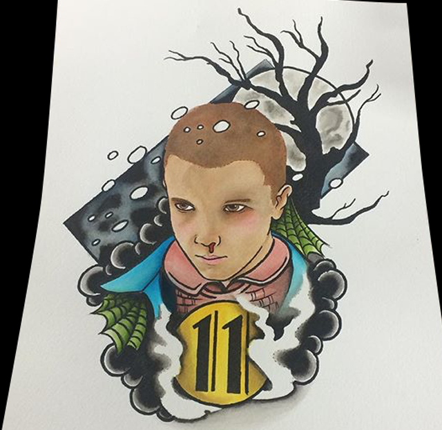Hey guys, thanks for checking out this week’s post. Gabe finished a back piece on one of our friends this week. He also got to tattoo Pharos horses on a chest, a large black and grey rose and a sunflower. Lars got to tattoo a bird with silhouettes and geometric shapes on one of his clients. Cody finished a koi sleeve and some celtic knot work on a girl’s stomach. Colin got to do a watercolor Captain America shield. Dan tattooed some Danny Reed flash on one of our counter guys. Phil did a painting of 11 from Stranger Things. Moe tattooed a gorilla on a forearm. Felix got to do a bunch of cool tattoos including a rose and some silhouettes on a neck and ear.