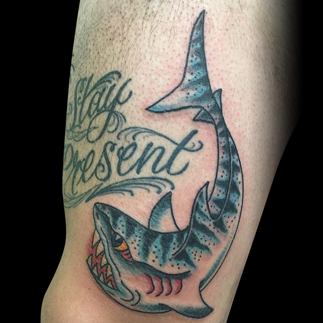 Another week gone, another shop update. This week Gabe got to tattoo a traditional Crane with roses on a thigh and a little ice cream cone tat. Cody got to do a cactus on a friend and start a celtic knot sleeve. Dan tattooed a traditional tiger shark and a “pikabob”. Jason did a black and grey ornate key. Colin tattooed a crying heart on a client’s arm. Felix got to tattoo some ornate shears on one of her customers. Have a good week guys.