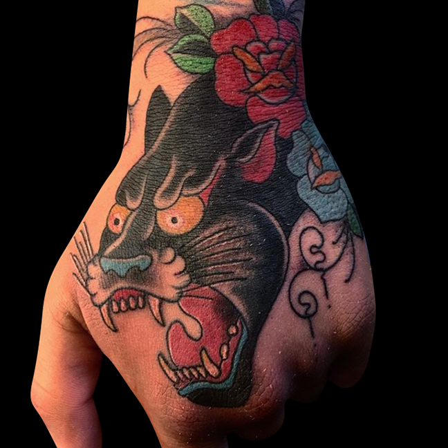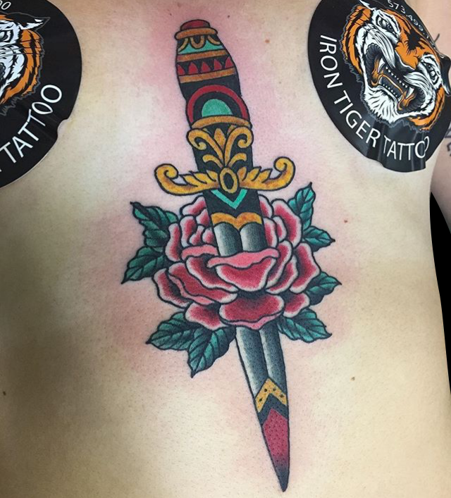 Hey guys, here’s your weekly update on Iron Tiger stuff. Gabe got to do a girlhead/tiger head dress, tattooed a traditional dragon on Dan’s head and did a cool little wolf to fill a spot on a sleeve he’s got in the works. Cody finished a Japanese floral half sleeve, tattooed some sunflowers, added on to some Polynesian tribal and got a healed pic of a Babe Ruth portrait he did on one of the counter guys. Colin did some watercolor flower “sisters” tattoos. Phil go to do a black and grey rose on a chest. Felix tattooed a rose on a dude’s hand, a palm tree on a girl’s ribs, added onto a Pokemon tattoo she started a couple weeks ago and did a symbol on a forearm. Enjoy the pics.