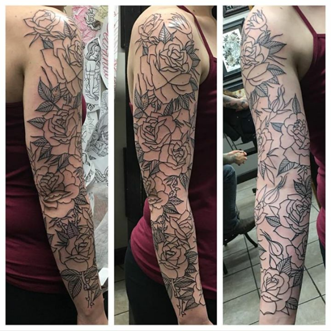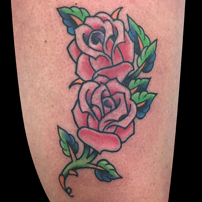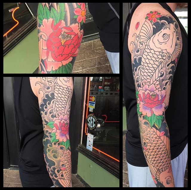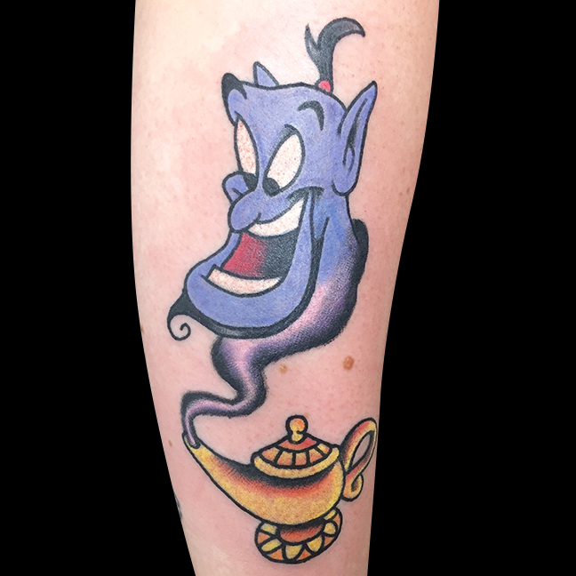 It’s Tuesday again so here’s your weekly update on shop stuff. Gabe got to work on a bunch of different traditional tattoos. Cody finished a couple big tats he’s been doing sessions on along with a black and grey money roll. Colin outlined a sleeve of roses. Dan finished a large flower tattoo on a client’s shoulder. Phil tattooed a tradition pin up/skull on a walk-in. Casey also got to do a pin-up tattoo. Morgan did some cool tattoos out at Trader Bobs in STL. Moe worked on a variety of tattoos including a Disney Genie, black and grey ornate lotus and sun/moon with faces. Felix tattooed the tree of life on a customer’s chest and a bow along with a few text tattoos. Boom.