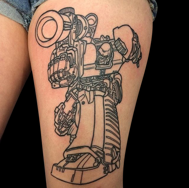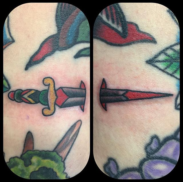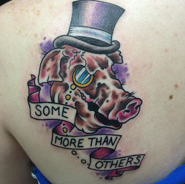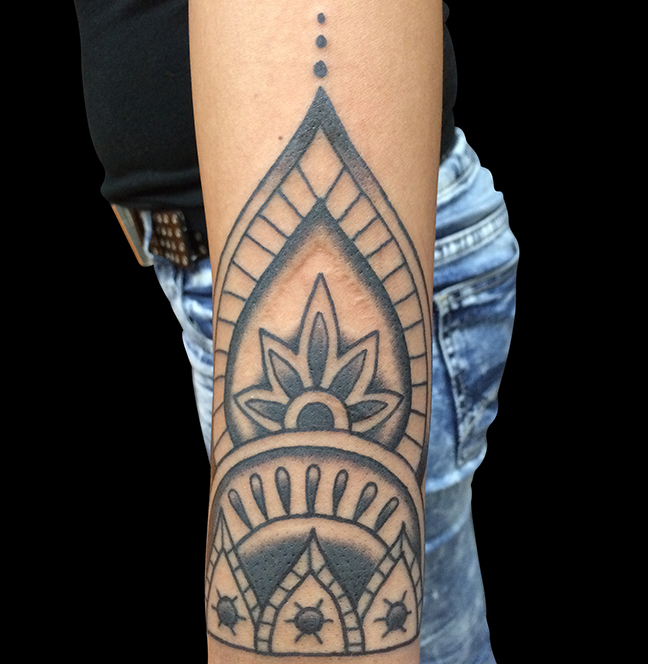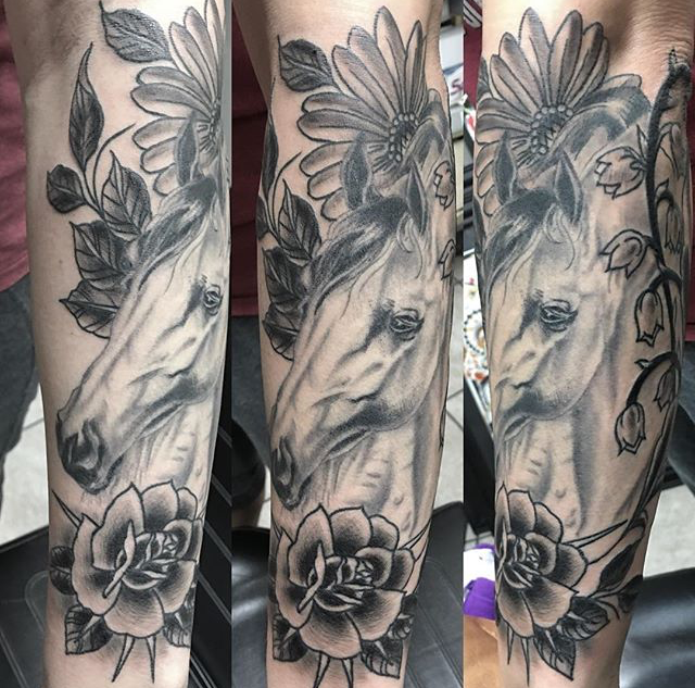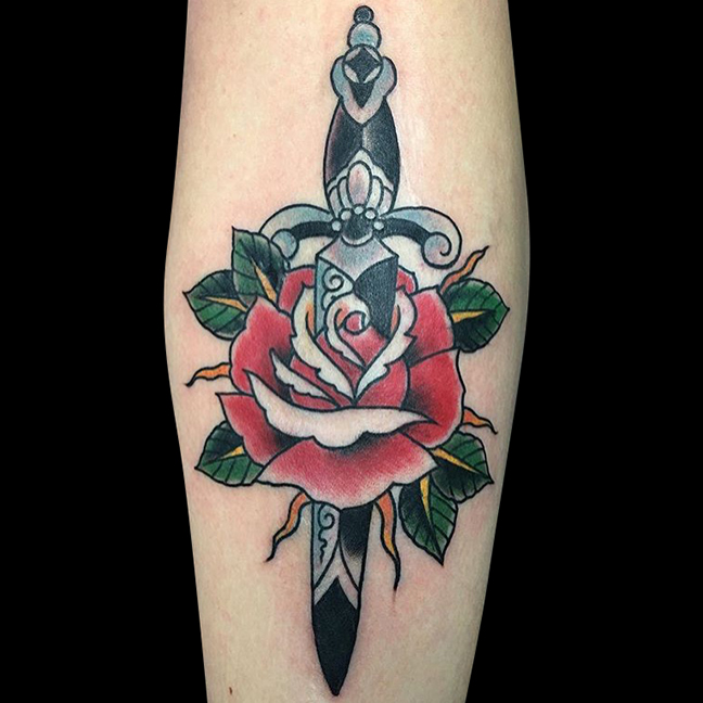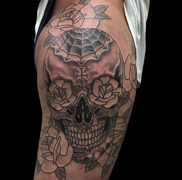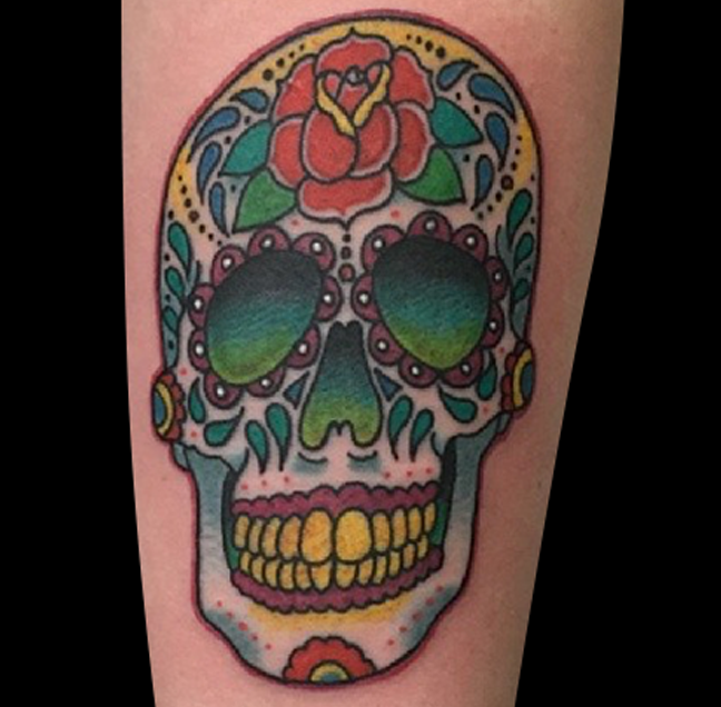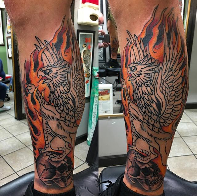 Hey guys, here’s what we were up to this week. Gabe did some session work on a couple different tattooed he’s been working on. He also tattooed an owl on a woman’s chest and a rose on a shoulder. Colin tattooed a bear on a client’s shin. While covering shifts at Iron Age in STL, Morgan tattooed a sugar skull and a black and grey skull and watch. Phil started a Transformers tattoo and did an Animal Farm pig head on a client’s back. Alysha tattooed a Gypsy Girl head on a walk-in. Dan got to tattoo a through-and-through dagger on a customer’s legs. Moe tattooed an ornate mandala-esque design on an arm. Felix tattooed some humming bird silhouettes, some watercolor feathers, a scale and an ornate arrow. Enjoy the pics.