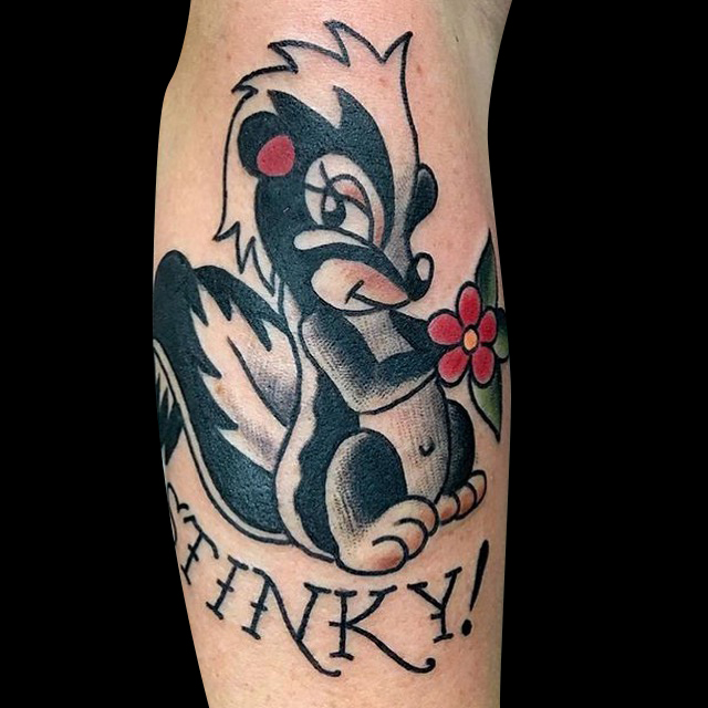 Hey guys, thanks for checking out this week’s shop update. Gabe got to do a traditional skunk tattoo along with an elephant head and a mouth. Lars tattooed a gaslight lamp with a cat on a client’s thigh. Cody tattooed a buffalo head with a landscape background. Colin got to do a traditional mom/heart. Phil tattooed a zombie banana on a regular. Morgan got to do a Lisa Frank style leopard, a flying pig and a storm cloud. Alysha tattooed a floral mandala on a thigh. Moe got to tattoo a tiger head and a crow head cover up on a hand. Felix did a couple different black and grey traditional rose tattoos. Boom!