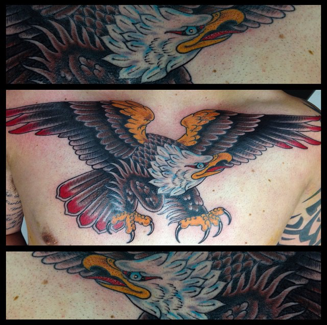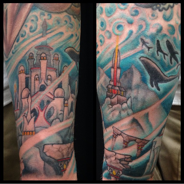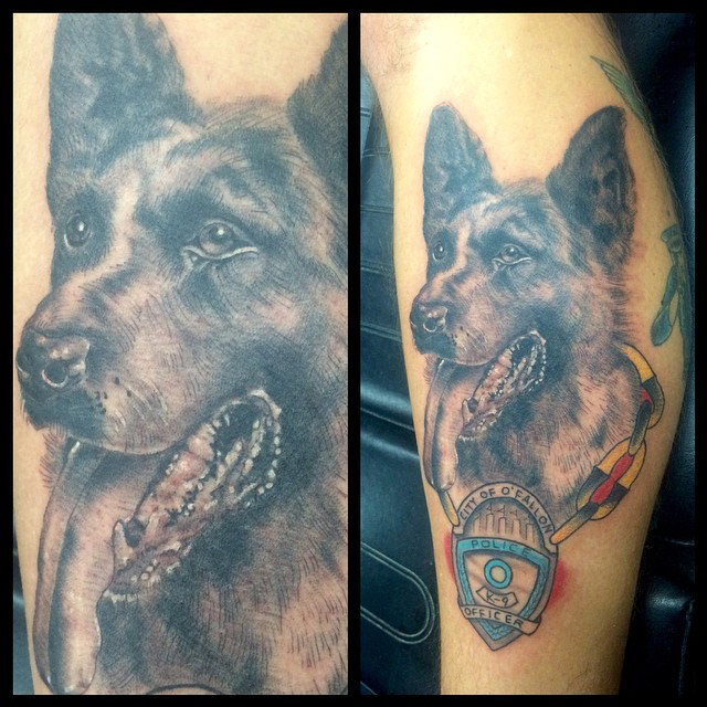 Hey guys, here’s this week’s shop update. Gabe was busy with a wide variety of projects including a German Shepard portrait and a traditional portrait of one of his clients. Cody did a huge traditional eagle chest piece, a sugar skull/owl and a creepy as shit spider. Lars did the city of Atlantis as part of sleeve he’s been working on as well as an anatomical heart with a key hole. Dan worked on an arrow with a banner.
