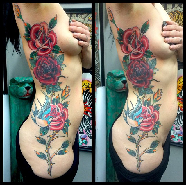 Hey everyone, It’s Tuesday again so lets do this thing. We’ve had a lot of people out of town this week. Gabe, Dan and Moe are all traveling and Lars is on vacation. Gabe has been doing a guest spot at Spotlight Tattoo in LA where he finally got to finish up some birds and flowers on a clients thigh. He got to do a pretty rad traditional snake too. Dan did a guest spot at Daddyo’s Tattoo in IL over the weekend where he got to do a couple different big cat heads. Before he left he outlined a Native skull with head dress on a girl’s thigh. Colin got to finish a huge wolf stomach piece this week. He also got to do a little symbol tattoo from The Fifth Element on a walk-in’s wrist. With all these tattooers out of town we brought in our good friend Jason Stubblefield to guest spot through this upcoming weekend. If you’re trying to get tattooed by him or any of the rest of our crew don’t hesitate to call or just stop by.