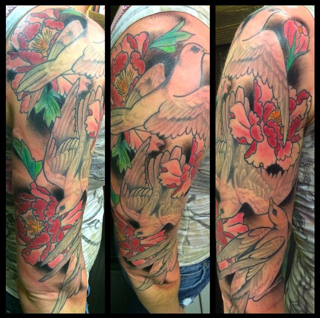Hey guys, it’s time for your weekly shop update. Gabe has been out in Las Vegas for the past week or so doing guest spots. Cody worked on a few different projects including a black and gray hawk, eagle chest piece outline and a tiny clipper ship. He also got a healed photo of some Polynesian tribal. Lars started a chrysalis series on his wife’s arm. Phil got to do another gypsy girl head on one of his regulars. Moe tattooed the Arrested Development seal on a walk in. Dan outlined a traditional lion over at Tattoo You. He also did a branch with flowers outline on a walk in’s under boob. See you next week.