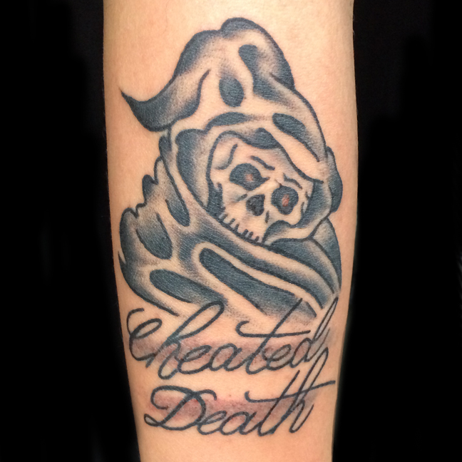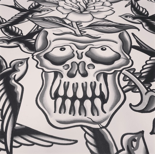 What’s up everybody? Thanks for checking out this week’s shop update. Our dude Mando from Immaculate Tattoo in AZ hung out with us for a couple days. Gabe did quite a bit of black and gray work including a bunch of armored plating on a shoulder. Lars had a crazy array of projects going on including wrapping up a back piece and tattooing the french horn from How I Met Your Mother. He also selected the winners from his print giveaway. They can be seen on his Instagram (@lars_van_zandt). Cody got to do a sick mermaid on a walk-in at Tattoo You. Phil did a pair of lion heads on a Father/Daughter combo on Saturday. Morgan finished up a rad Medusa painting and tattooed a panda sugar skull on a walk-in. Dan finished his first session on what will end up being a full throat tattoo. We’re on it 25/8.