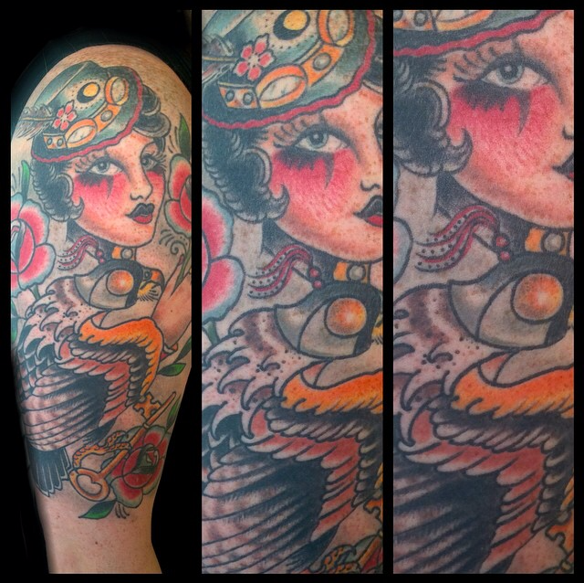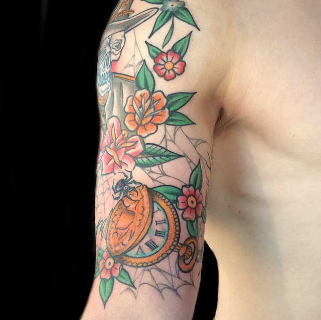 Well it’s Tuesday again so here’s your weekly dose of Iron Tiger stuff. As usual, Gabe had some large pieces in the works including the skull/rose shoulder tat in the pics below. Colin made some progress on a half sleeve he’s been working on and got to do some cool traditional flash on a walk-in. Cody did a sick Viking Girl on a customer over at Tattoo You. Lars had a decent amount of appointments this week including a nice traditional anchor/rose. Moe got to do a Reaper on a walk-in client on Saturday. Morgan did a fun little crystal cluster on Lars’s wife Tiffany. Cody, Lars and Casey all cranked out some rad new flash.
