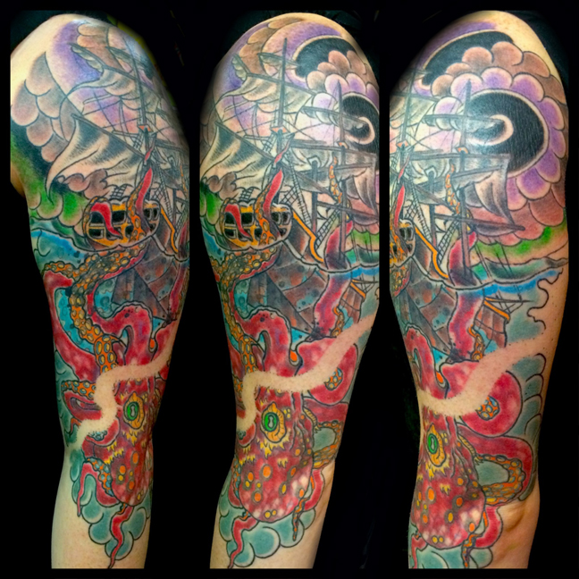 Hey guys, thanks for checking out this weeks post. Our friend Caleb from Iron Age stopped in to do a guest spot on Saturday. Everyone did a decent mix of appointment pieces and walk-ins this week. There’s pics of a few from Lars, Colin and Dan below. Despite the nice Fall-ish weather and the football game on Saturday, the shop was busy all week. Come hang out and get cool tats.