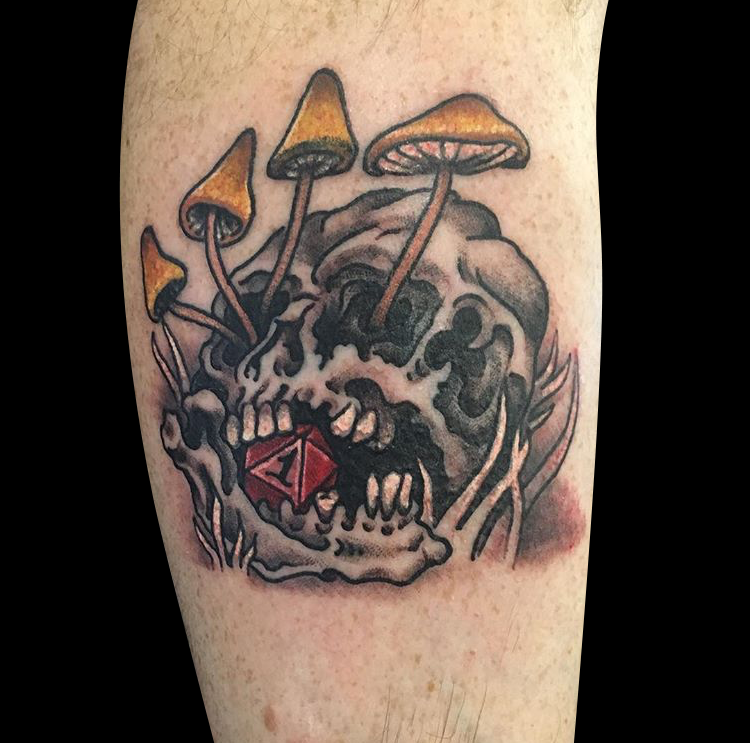 This week Gabe did a spider/rose/girlhead on a client. Cody fixed up a black and grey wolf his client originally got in a house. Lars tattooed a hilarious Dwight Schrute/beet on a dude’s leg. Colin got to do a Blasphemy band tattoo. Dan did a bear silhouette/landscape tat. Casey outlined a traditional dragon on a client’s back. Pablo got to do a snake with flowers.
