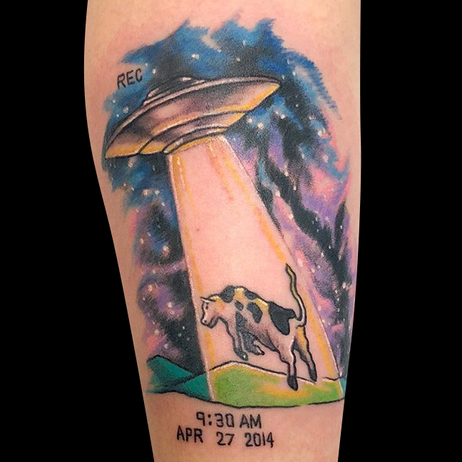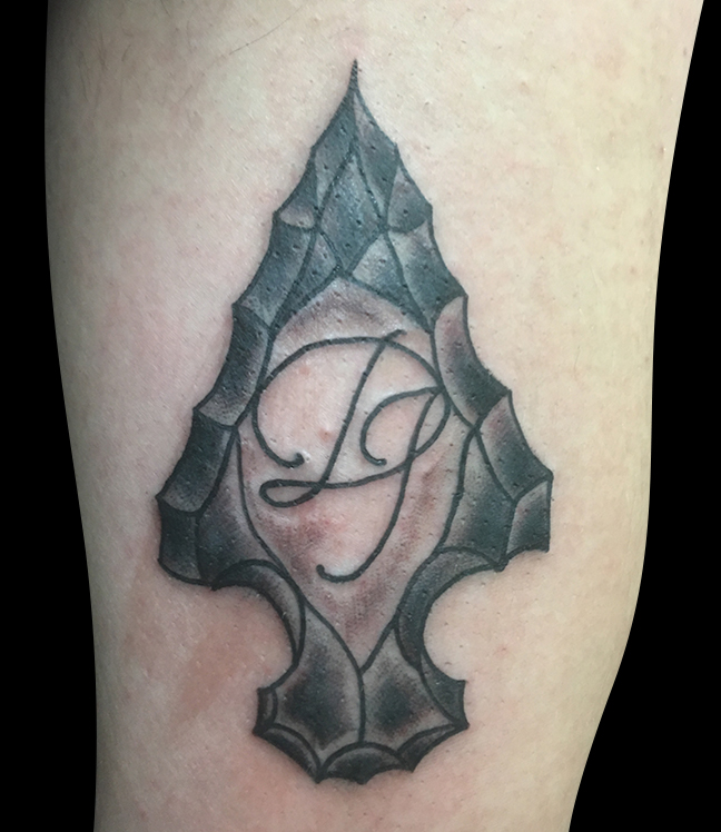 This week Gabe outlined a few large projects and did an arrow head with initials. Colin did a Geisha on an arm. Lars tattooed a little traditional skeleton/headstone on a leg. Dan got to do a cool tradi bear. Jason did a rose tattoo and a little peace symbol on a girl’s hand. Casey got to tattoo a little loaf of bread off some flash he drew. Mike did a smoldering sage bundle tattoo and an alien cow abduction.