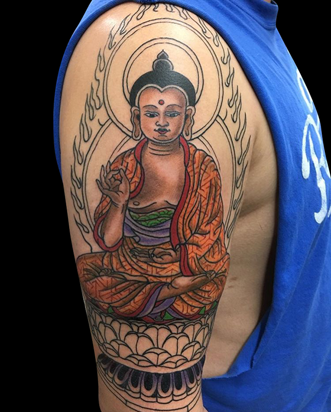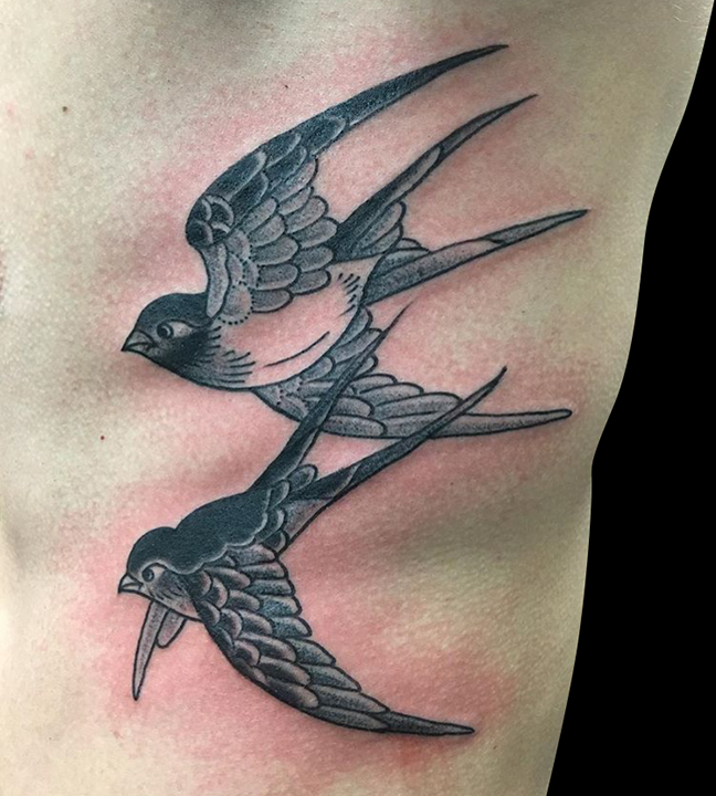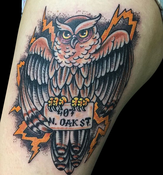 Hey guys, here’s this week’s update. Gabe did a traditional girl head on a customers arm, outlined a Buddha half sleeve and did some black and grey sparrows on a couple’s ribs. Cody finished a Polynesian tribal sleeve and did a traditional heart tattoo on a walk-in. Colin got to do a crazy geometric owl and a bear head. Dan did a nice rose on one of his customers. Phil outlined a floral half sleeve on a client. Jason did a couple different floral tattoos, a palm tree and an MU logo on a dude’s ass. Felix got to do a Rick and Morty tattoo and a watercolor paw print. Take a look at the pics.