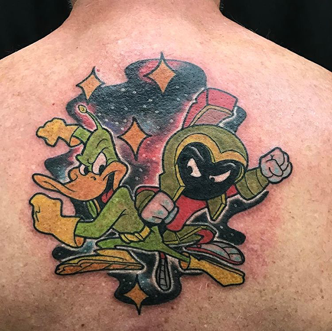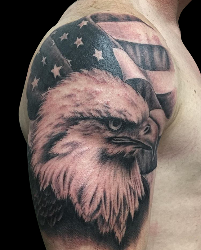 Hey guys, hope you all had a great Independence Day. Gabe, Dan and Phil just got back from the Northern Arizona Tattoo Fest. Before he left, Gabe got to tattoo a really cool star/mandala on a clients arm. He also did a little traditional hour glass. Cody got to tattoo some flash off the wall on a walk-in. I threw in a rad black and grey eagle and flag he did recently because, you know, America. Lars tattooed a clients cat on their arm. Colin tattooed an old Hook-Ups skateboard graphic on a dude’s arm. He also got to do an octopus and pharos horses. Dan did a wolf head tat and a tiger shark. He also got a pic of a healed pin-up from awhile back. Phil lucked out and got to do a Duck Dodgers/Marvin the Martian tattoo. He also started outlining a Last Unicorn sleeve, did a traditional dagger and some black and grey mountains. Jason tattooed a crow on a dude’s arm. Casey did a little mandala on a shoulder. Felix got to tattoo some preying hand, a black and grey chola chic and a butterfly on a client’s ass. Enjoy.