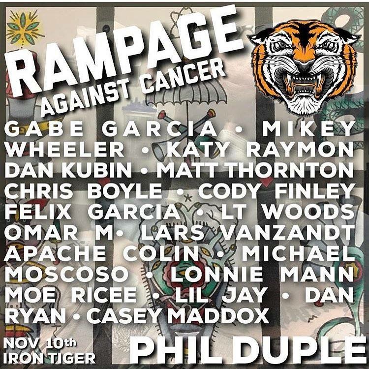 On Friday, November 10th, we will be hosting an all day tattoo event. Our entire staff plus guest tattooers from around the country will be participating. All funds earned will go toward helping our good friend and coworker, Phil Duple, make ends meet while he battles stage 3 cancer. There will be in-store and online auctions of various paintings, prints, machines, vintage acetates, etc. The online auctions will run from 5pm Friday until 5pm Monday. Follow Gabe on instagram (@gabe_garcia) to see what will be available.